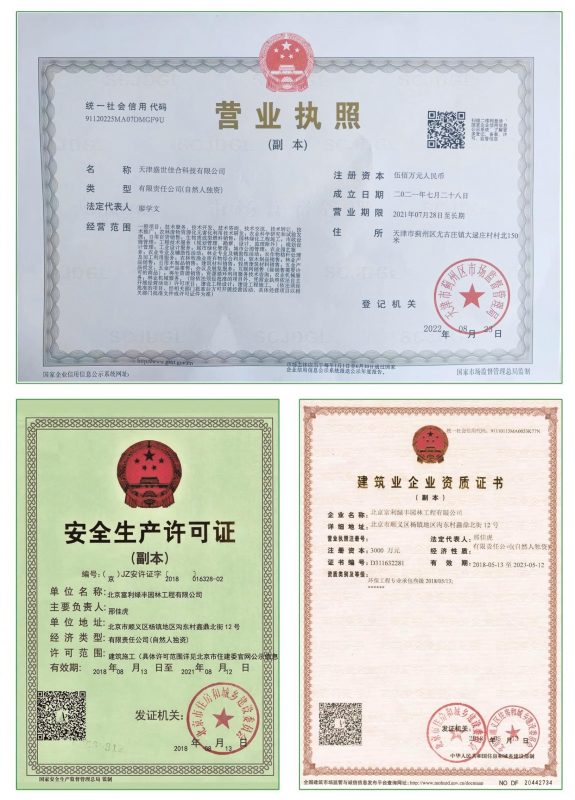 Founded on July 28, 2021, Tianjin Shengshi Jiahe Technology Co., Ltd. is committed to the development of landscaping. The company has accumulated rich experience in construction and management, and trained a group of professional technical backbones and skilled workers.